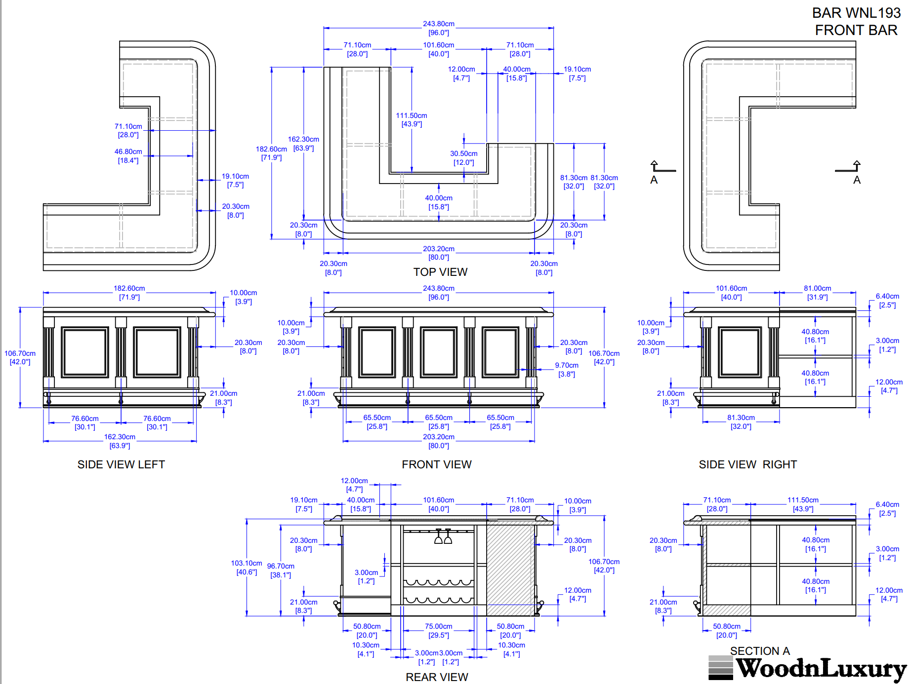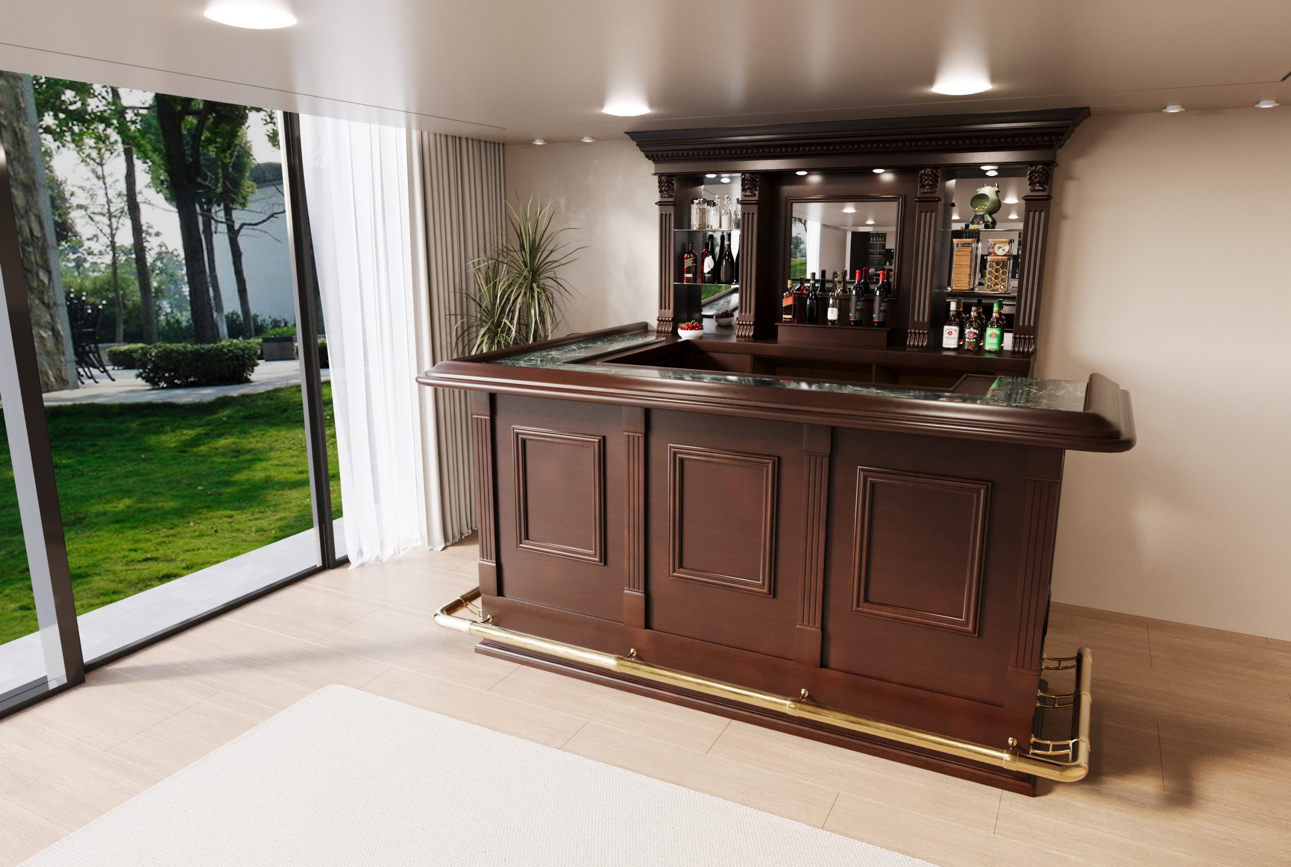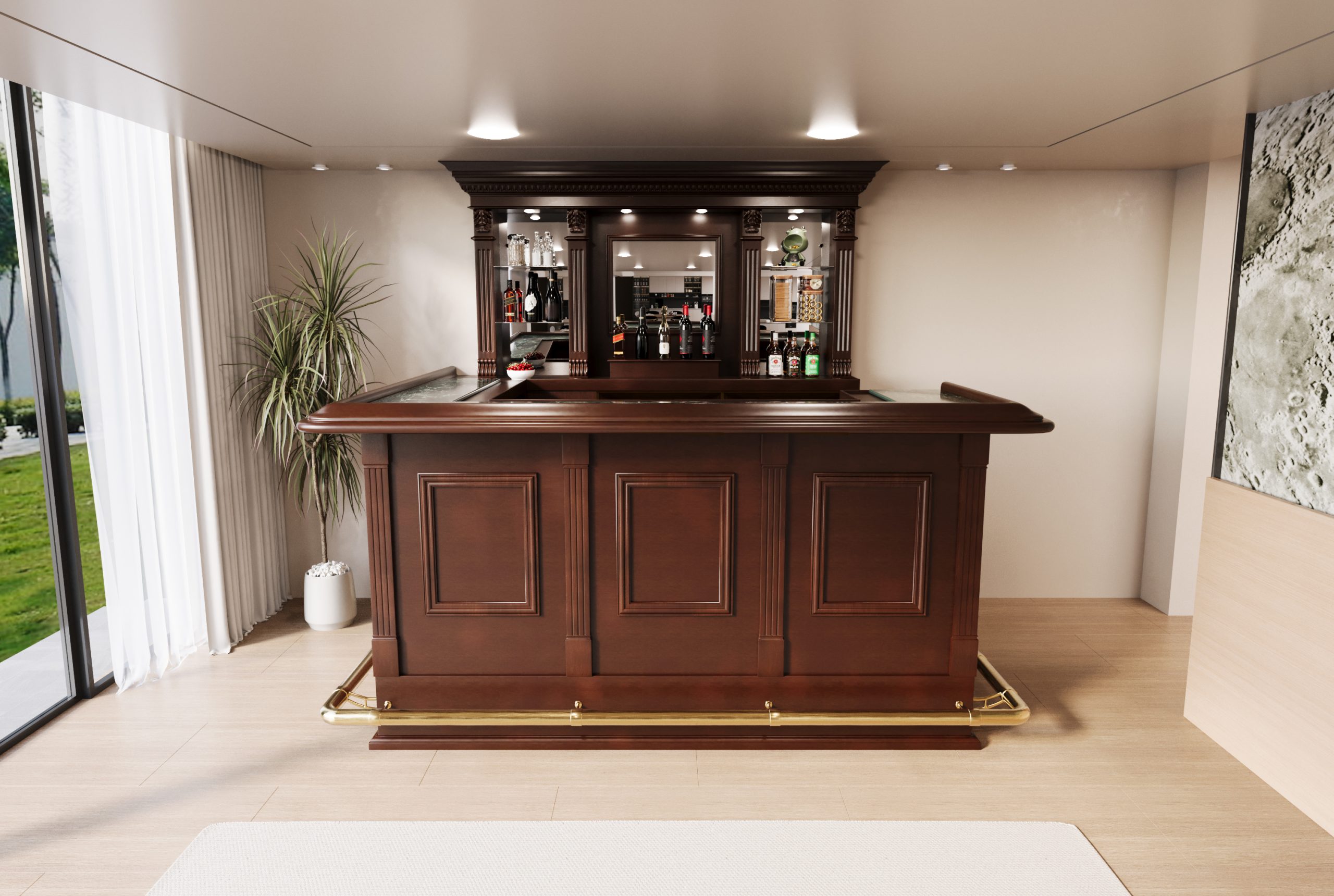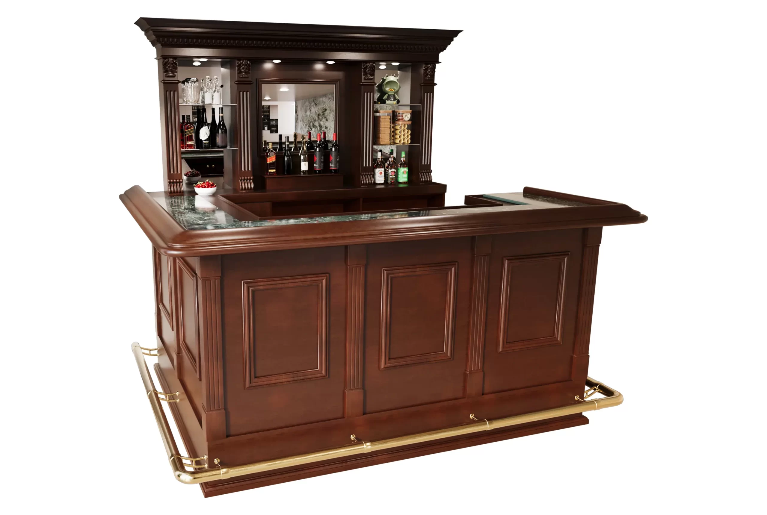 Traditional Dark Cherry Finish Bar Boasting Elegant Paneled Construction – Bar WNL193